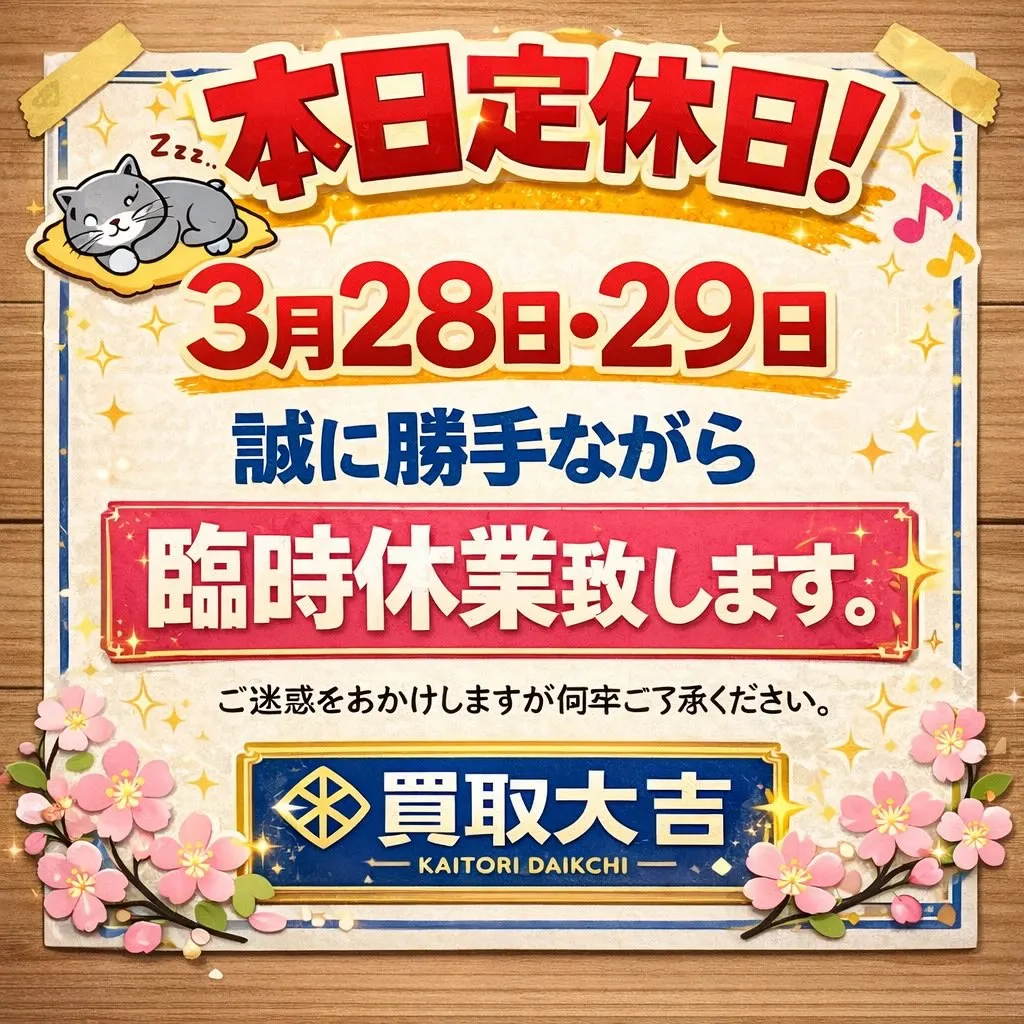 また、3月28日・29日は誠に勝手ながら臨時休業とさせていただきます。